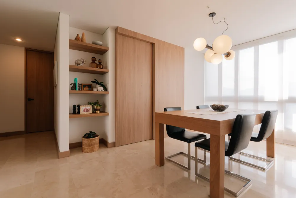 BRUNO es un comedor de líneas rectas y proporciones sólidas, que combina madera natural con detalles modernos. Ideal para quienes valoran el diseño limpio y atemporal.