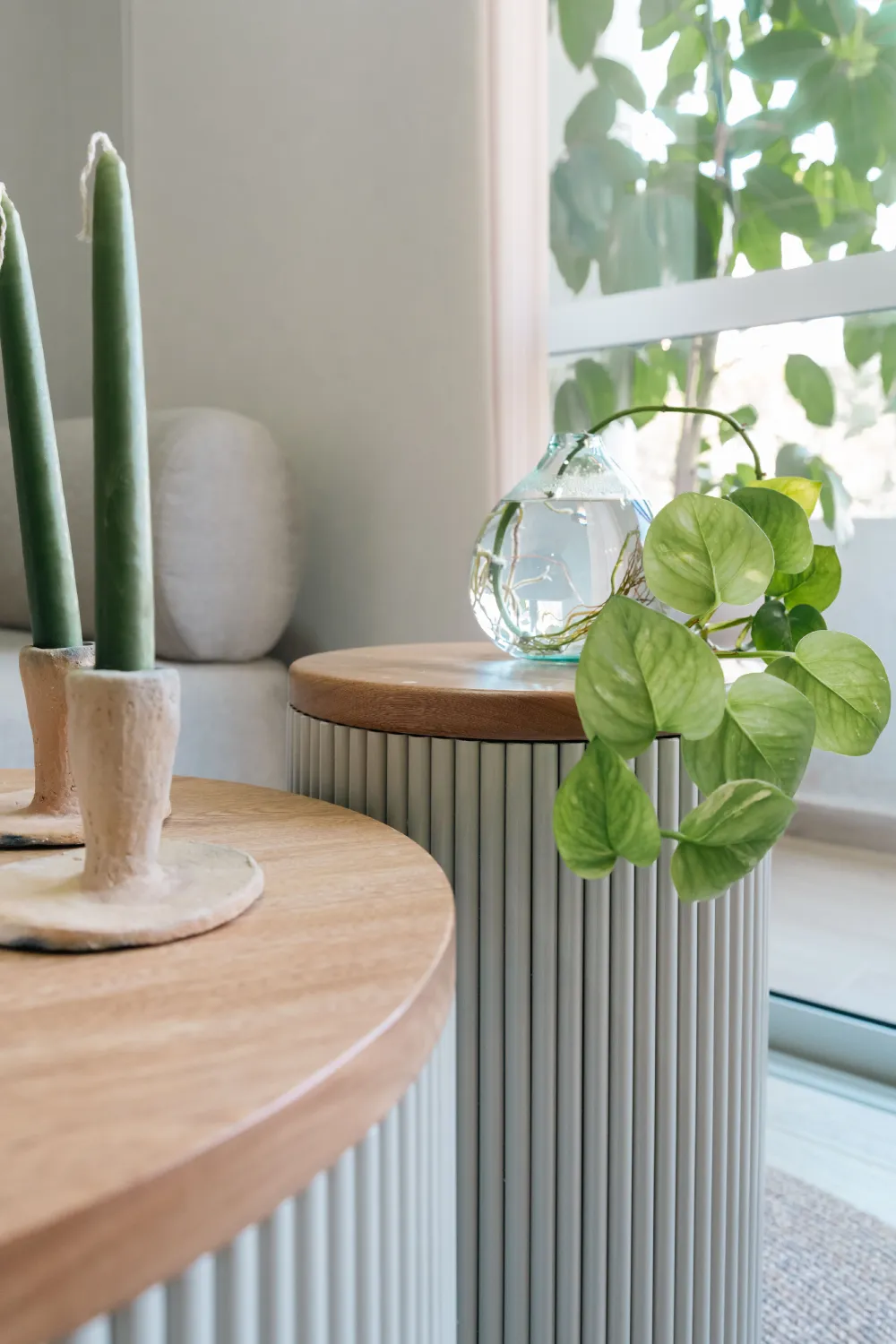Transforma tus espacios con piezas que transmiten armonía y carácter. Este dúo de mesas, con su diseño acanalado y cálido acabado en madera, aporta frescura, movimiento y un toque de sofisticación natural. Perfectas para quienes buscan crear ambientes acogedores, llenos de luz, vida y estilo auténtico.