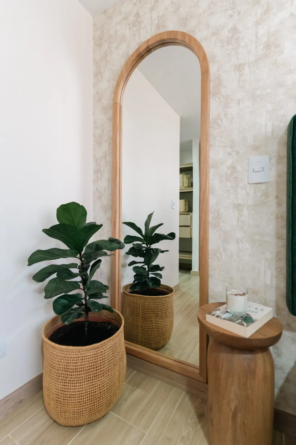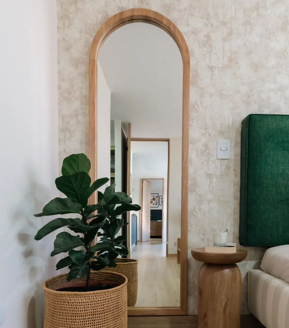 Un diseño elegante y versátil que combina la calidez del roble con la sofisticación de su forma arqueada. Ideal para dormitorios o vestidores, aporta amplitud, luminosidad y un toque natural que realza cualquier ambiente