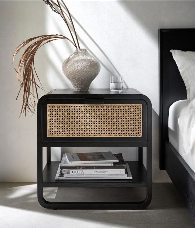 Un encuentro perfecto entre lo natural y lo contemporáneo. La Mesa de Noche Serena combina una estructura en madera oscura con detalles en tejido de ratán, aportando calidez, textura y sofisticación. Ideal para espacios que buscan estilo con alma artesanal.